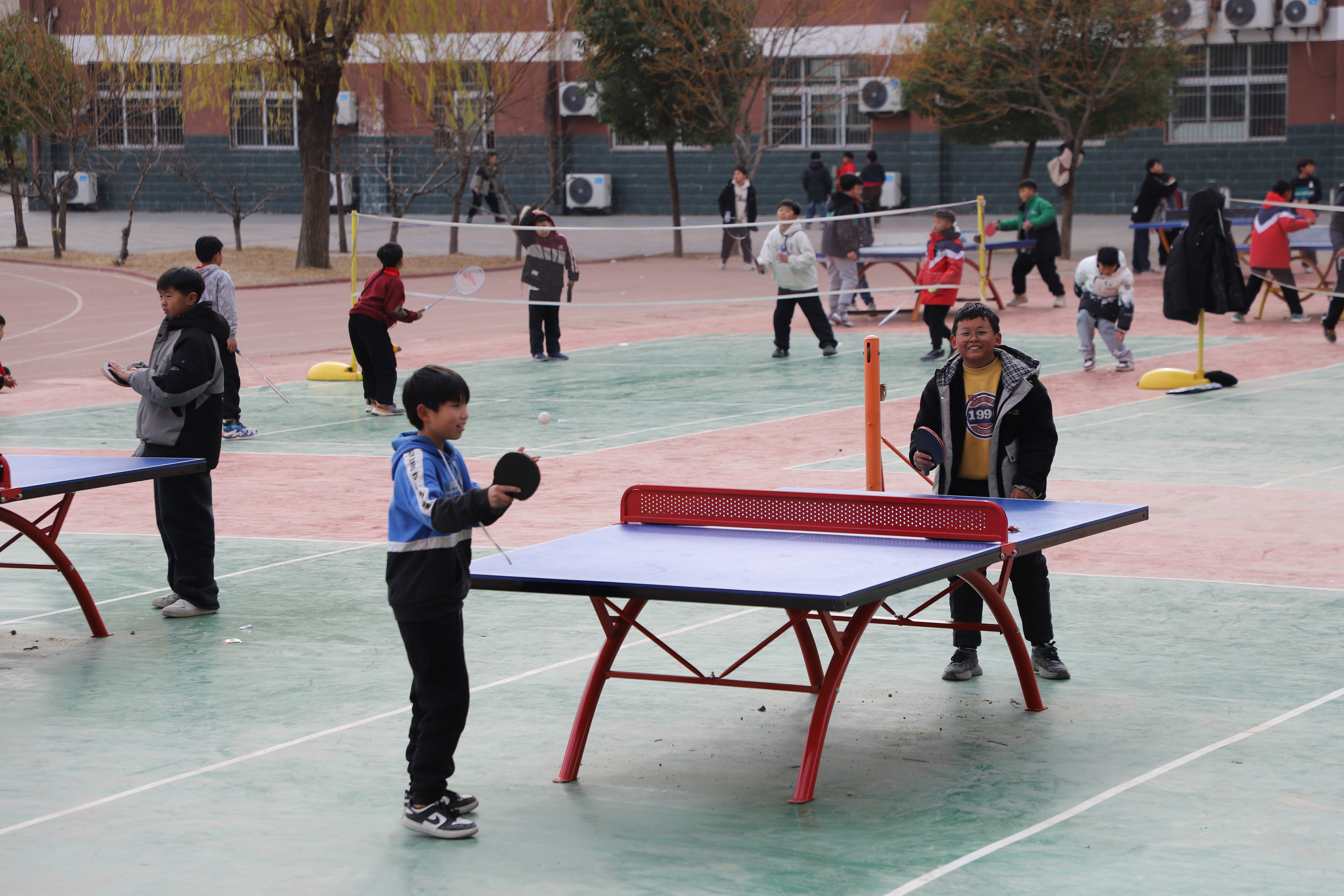 下課后,打乒乓球的孩子們,仿若脫韁的小獵豹,瞅見(jiàn)我們便呼嘯而來(lái),熱情邀戰。我童心乍起,抬手比出《七龍珠》動(dòng)畫(huà)中龜派氣功招式,乒乓小將們哄堂大笑,默契地用球拍迎擊玩鬧。