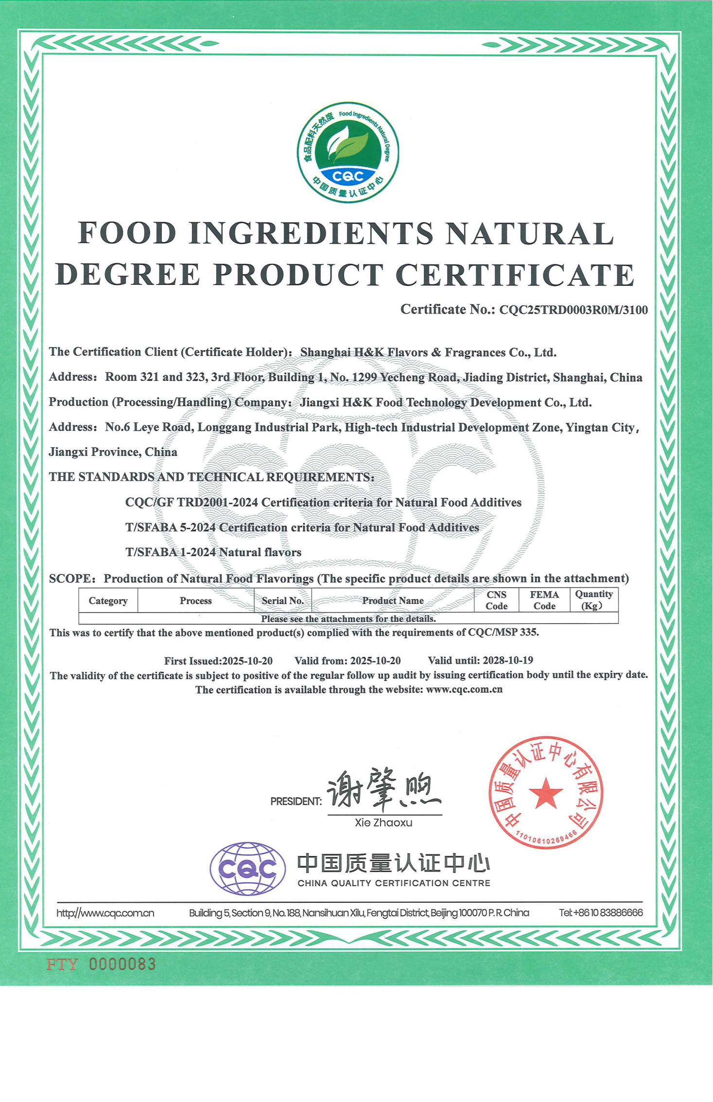 《食品配料天然度產(chǎn)品認證證書(shū)》