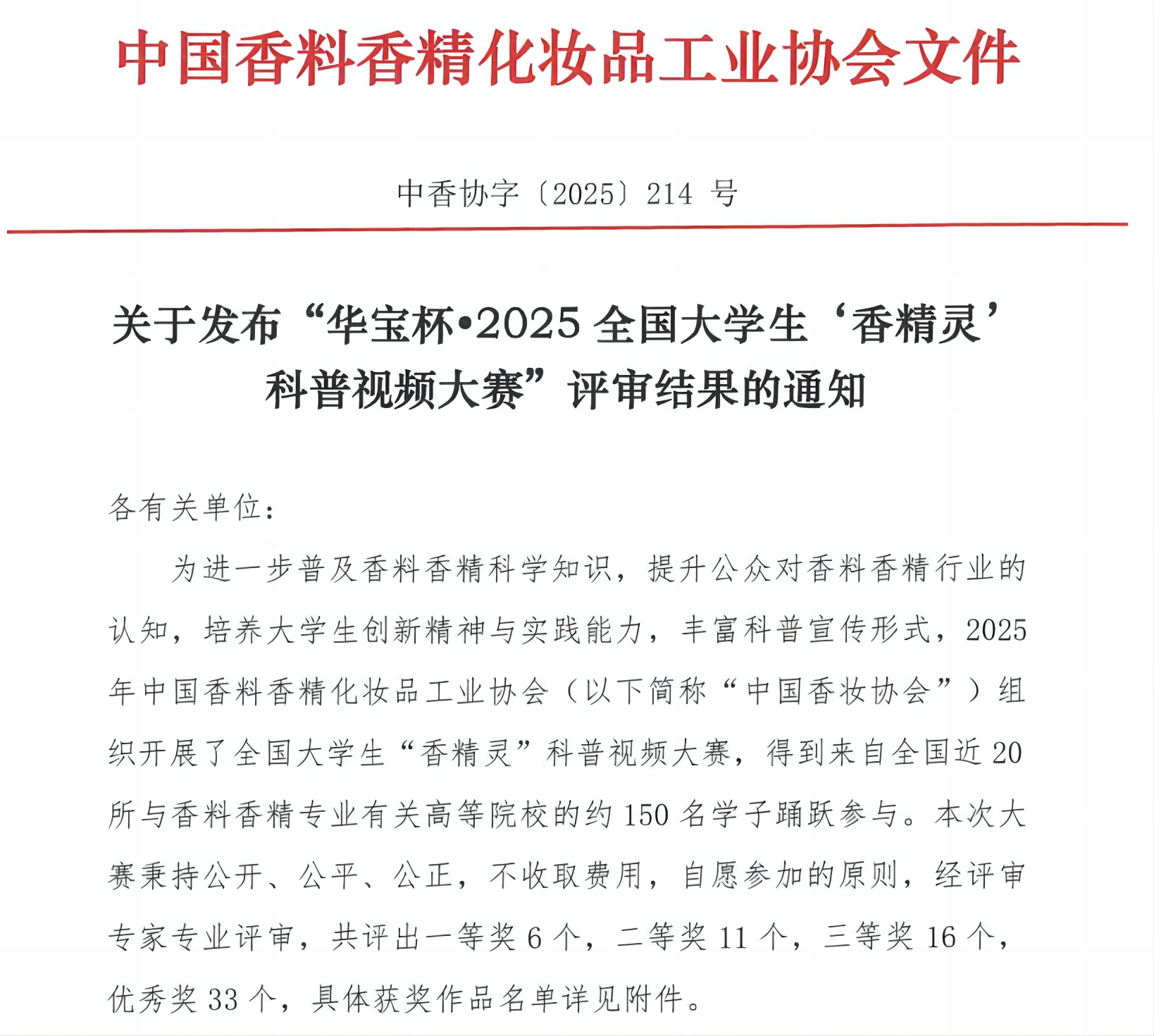 經(jīng)由包括華寶股份專(zhuān)家在內的專(zhuān)業(yè)評審委員會(huì )嚴格遴選,秉持公開(kāi)、公平、公正原則,共評出一等獎6個(gè),二等獎11個(gè),三等獎16個(gè),優(yōu)秀獎33個(gè)。獲獎名單已在中國香妝協(xié)會(huì )官網(wǎng)及微信公眾號公示。