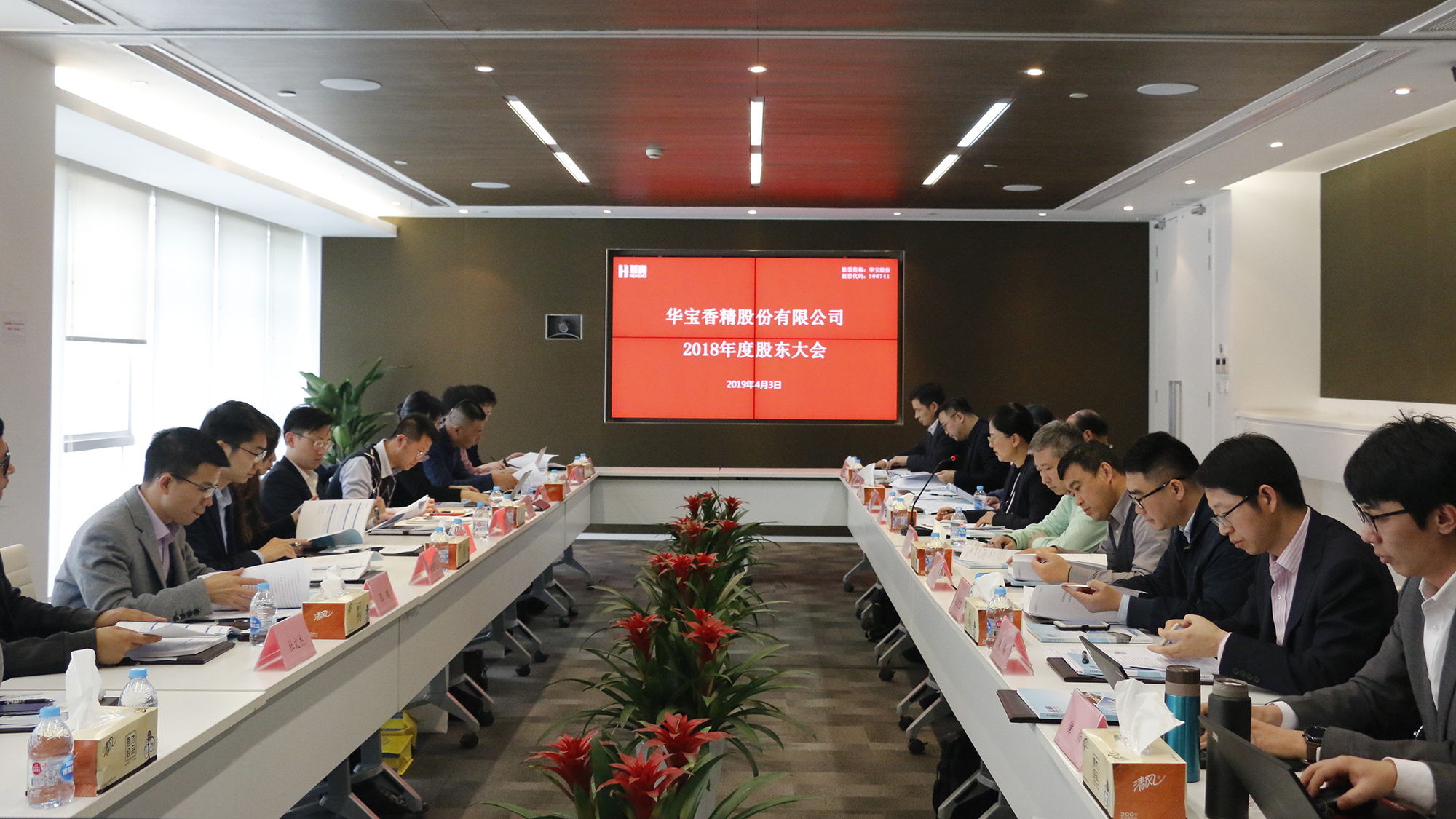 4月3日下午2點(diǎn),華寶香精股份有限公司2018年度股東大會(huì )在公司會(huì )議室成功召開(kāi)。華寶股份董事、總裁袁肖琴女士,董事張子恒先生,獨立董事符啟林教授、章焰生教授、余應敏教授,監事會(huì )主席趙德旭先生,監事朱琦先生,副總裁、董事會(huì )秘書(shū)胡偉先生,財務(wù)總監王德華先生及華烽國際、共青城東證等股東和股東代表共20余人參會(huì ),會(huì )議由公司董事、總裁袁肖琴女士主持。
