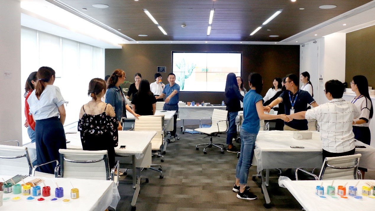 參加活動(dòng)的員工暫時(shí)放下工作,拋開(kāi)煩惱,在園藝治療師的指導下,動(dòng)動(dòng)手、動(dòng)動(dòng)腦,親手涂鴉花盆,種植仙人球,來(lái)了一場(chǎng)園藝治療減壓體驗?,F場(chǎng)氣氛輕松活躍,不時(shí)傳來(lái)歡聲笑語(yǔ)。