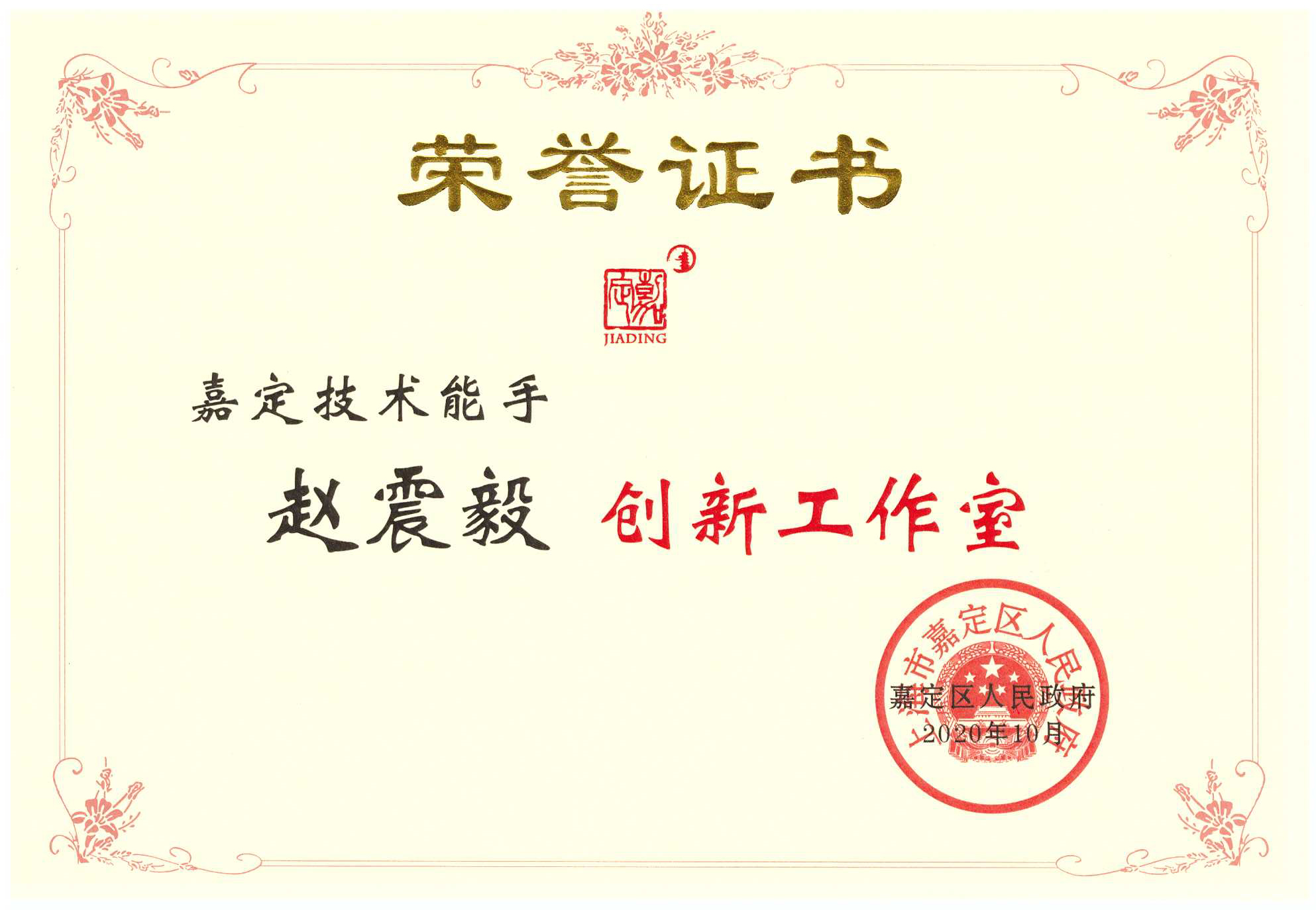 10月28日上午,上海市嘉定區2020年“嘉定工匠”等高技能人才座談會(huì )暨創(chuàng )新工作室授牌儀式在嘉定區工人文化宮舉行,我司獲頒“嘉定技術(shù)能手趙震毅創(chuàng )新工作室”榮譽(yù)證書(shū)和牌匾。