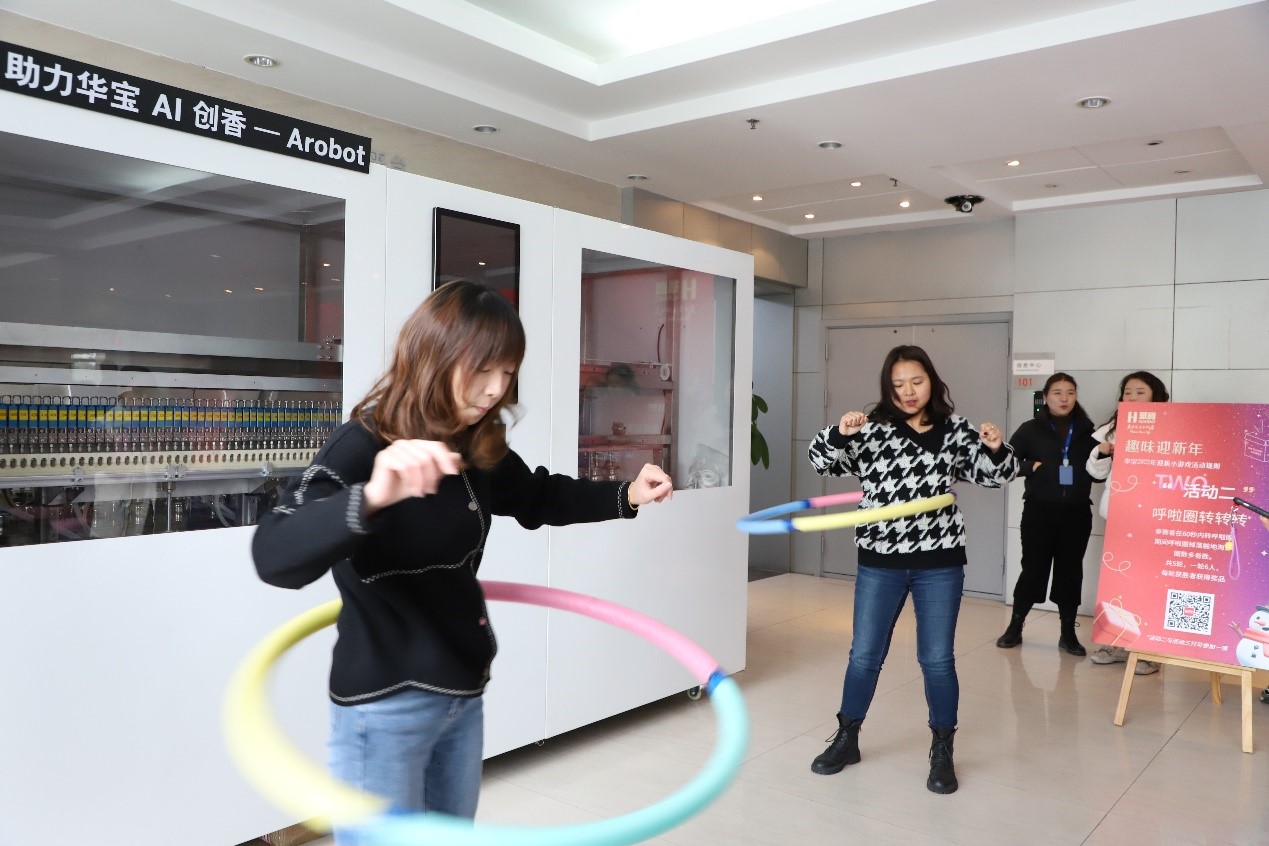 為喜迎元旦新年,豐富員工的節日文化生活,加強公司企業(yè)文化建設,12月28日中午,華寶股份聯(lián)合工會(huì )和華寶國際聯(lián)合舉辦了“華寶2022年度趣味迎新活動(dòng)”。為舉辦此次活動(dòng),華寶聯(lián)合工會(huì )做了精心準備、細致安排,從采購節日禮品、游戲設置、反復討論、推演,只為舉辦一場(chǎng)歡樂(lè )開(kāi)懷的迎新活動(dòng)。本次迎新活動(dòng)設置了三個(gè)趣味游戲,分別是套圈、60秒抖落小球、60秒呼啦圈轉轉轉,員工們通過(guò)游戲獲得自己的新年禮物。