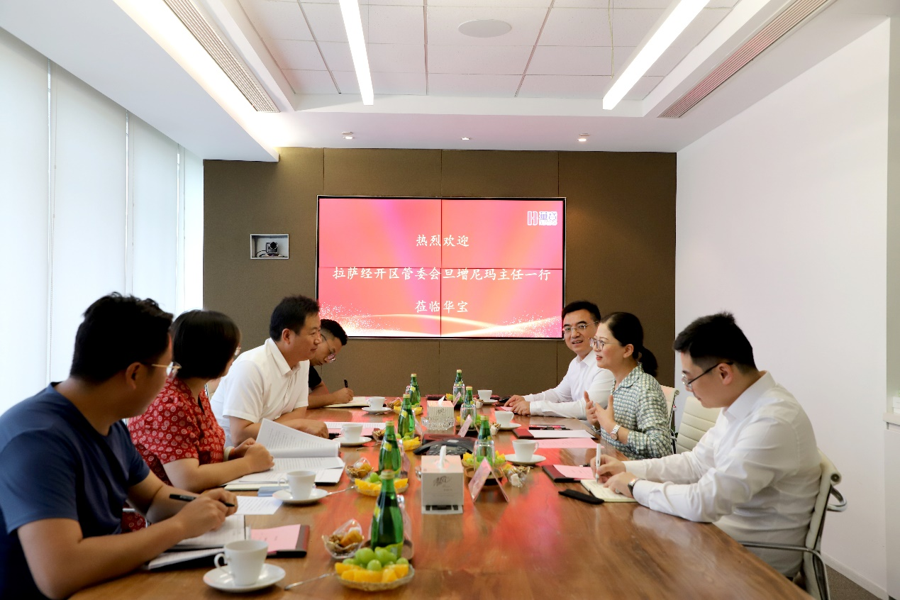 9月15日上午,西藏拉薩經(jīng)開(kāi)區黨工委副書(shū)記、管委會(huì )主任丹增尼瑪一行蒞臨華寶股份上海園區考察調研,華寶股份董事、總裁袁肖琴女士,華寶股份副總裁、財務(wù)總監張捷先生,華寶股份總裁助理楊成先生在華寶股份上海園區總部大樓熱情接待了遠道而來(lái)的客人。