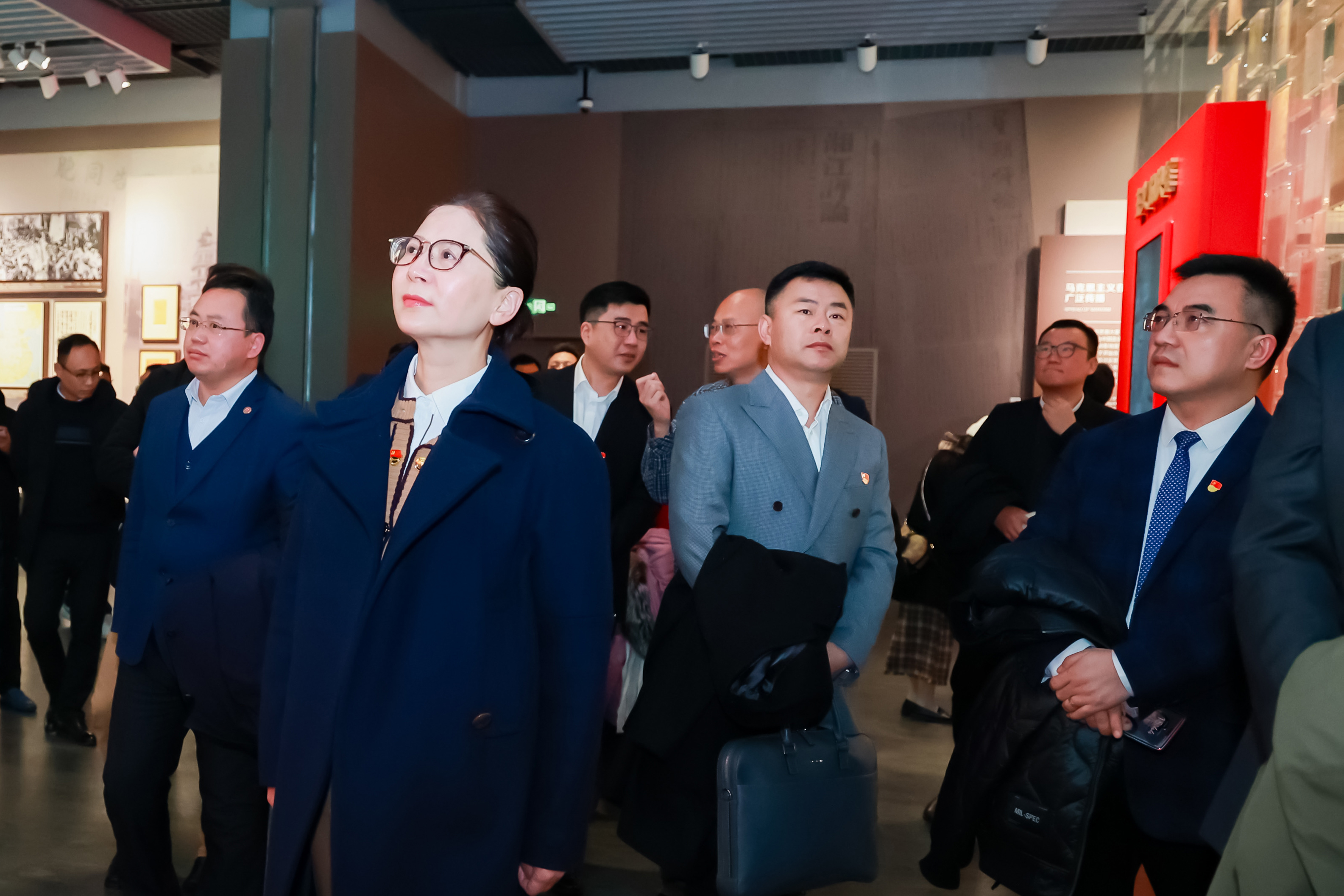 袁總等一行領(lǐng)導首先參觀(guān)了“偉大的開(kāi)端——中國共產(chǎn)黨創(chuàng )建歷史陳列”展覽。展覽史詩(shī)般展現了中國共產(chǎn)黨從孕育到誕生,于百載陸沉時(shí)燃星火、于水深火熱中救萬(wàn)民、于曲折窮途處倡改革、于砥礪奮進(jìn)中成小康的卓絕歷程。穿行其中,領(lǐng)導一行看盞盞星火何以劃破寂寂暗夜,探尋先輩們關(guān)乎人民解放、民族復興的思想覺(jué)醒與上下求索。