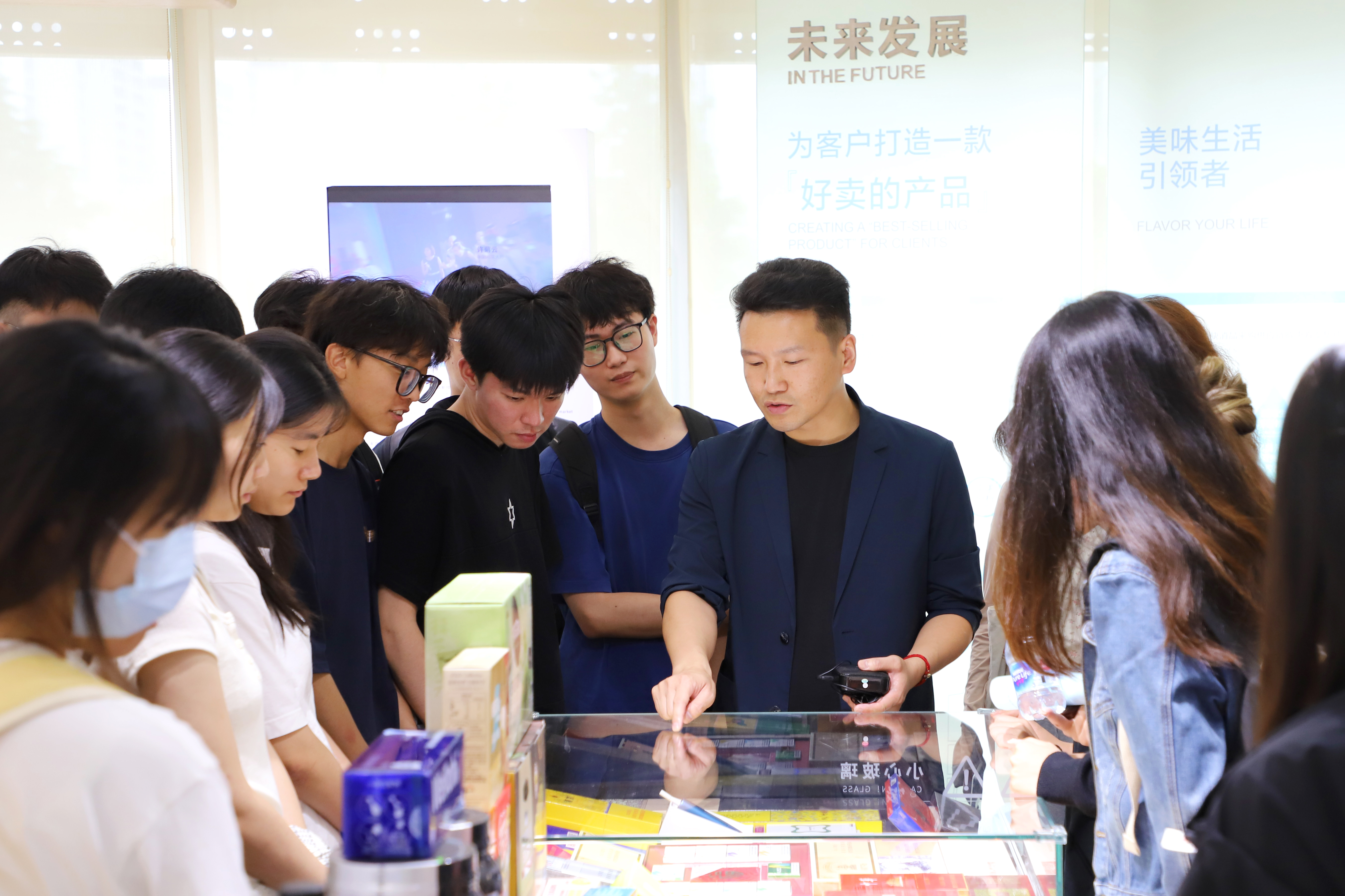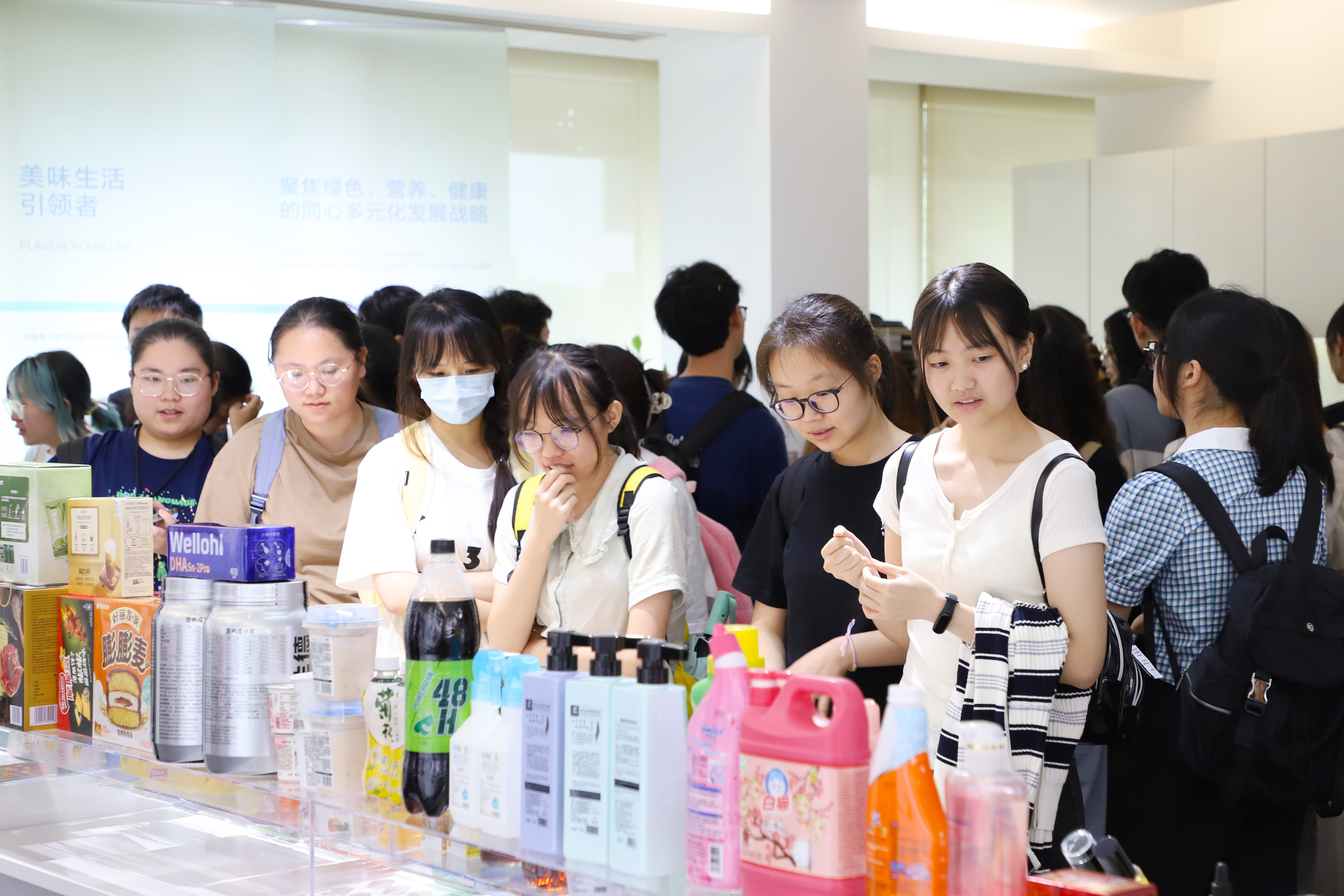 參觀(guān)公司展廳過(guò)程中,同學(xué)們饒有興趣地了解了公司產(chǎn)品,不時(shí)詢(xún)問(wèn)產(chǎn)品的相關(guān)問(wèn)題。在客戶(hù)產(chǎn)品展示區,同學(xué)們討論熱烈,一個(gè)個(gè)耳熟能詳的知名客戶(hù)也讓他們加深了對華寶實(shí)力的認識。此外,我們?yōu)橥瑢W(xué)們精心準備了黑松露火腿蘇打餅干,這是一款在山姆會(huì )員店熱銷(xiāo)的產(chǎn)品,還讓大家品嘗了冰激凌。讓同學(xué)們通過(guò)聽(tīng)、看、嗅和嘗,全方位感受味道的魅力,感受華寶的實(shí)力。